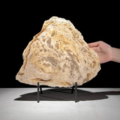 Häikäisevä kivettyneen puun viipale räätälöidyllä jalustalla. - Kivettyn