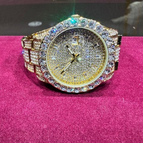 Chezard vuodesta 1897 kaksivärinen kvartsichronograph-kello kokonaisilla rhinestone-koristeluelementeilläAiemmin suurin ja tunnetuin valmistaja liikkeille, joissa on 'hyppivä sekunti'.Kellon tiedot:kvartsichronograph-liikestop-toimintoruostumattomasta teräksestä valmistettu kotelo IP-kultavedenkestävyys 3 ATM:iin astiruostumattomasta teräksestä valmistettu taittuva solki IP-kultakotelon halkaisija: noin 42 mm ilman kruunuapaksuus noin 10 mmrannehankkeen kokonaispituus noin 22 cmtakakansi ruostumatonta terästärannehden leveys 22 mmhehkuvat osoittimetAlkuperäinen laatikko alkuperäisellä takuukortilla, historia-kortilla ja todistuksellaerinomainen kunto, käyttämätönvalokuvat ovat osa kuvaustaturvattu toimitus sisältyy