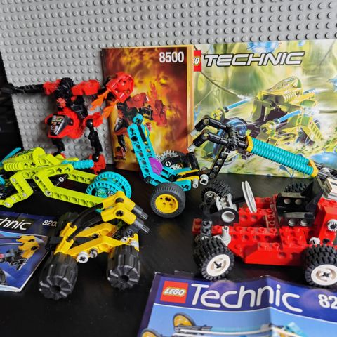 Lego Technic rakennus- ja kiinnitysosia ainakin kolmeen sarjaan, joiden ohjeet mukana. Mukana tulee myös akseleita, rattaita, kaksi pullback-moottoria ja telaketjuja. Iso säilytyslaatikko on noin 50cm x 15cm x 25cm. Pikkurasiat, joissa legot ovat, tulevat myös mukana kaupassa.