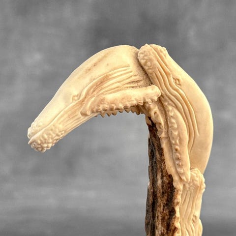 Kaiverrus, Stunning grim reaper carving from deer antler on a custom stand - 16