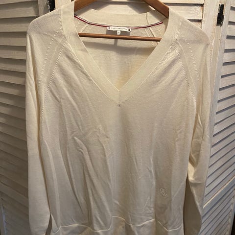 Käyttämätön Vila valkoinen neulepaita koossa XL, tavanomaista pienempi. Materiaali 100% puuvilla.