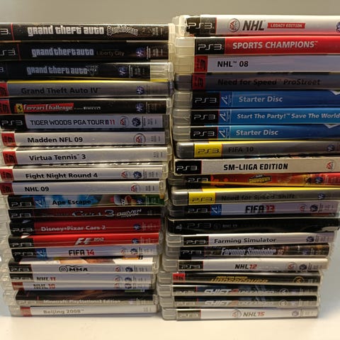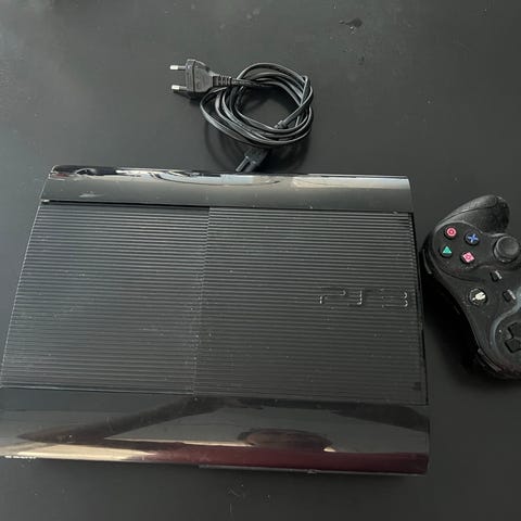 PS3 konsoli sekä vain virtajohto kuuluvat pakettiin. Päällä hieman kulumaa sekä pohjasta puuttuu yksi pehmuste.