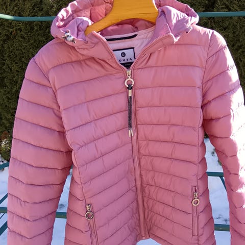 Luhta naisten takki, koko 42. Väri kulta. Materiaali polyesteriä. Takissa on vetoketjukiinnitys edessä sekä vetoketjulliset sivutaskut. Hihansuissa ja helmassa on kuminauhakiristys. Sopii arkikäyttöön ja kevyeksi päällystakiksi.