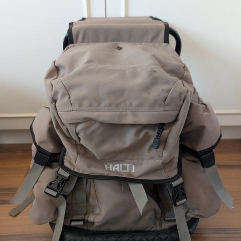Kinetic merkkinen pilkkireppu / piljkijakkara. Tosi hyvässä kunnossa. Edessä ja toisella sivulla iso vetoketjullinen tasku, yhdellä sivulla kaksi pienempää taskua ja tarranauhapaikat esim. sohjokauhalle.