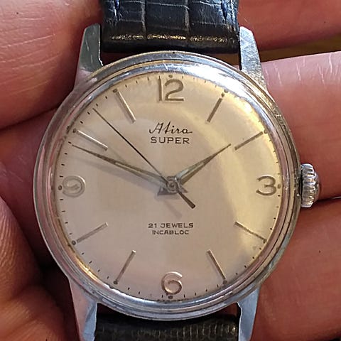 Päällisin puolin siistissä kunnossa oleva vintage Ciny vetokello. Swiss made. Käy ja pitää aikaa puolenpäivän seurannalla. Huoltohistoriasta ei kuitenkaan tarkempaa tietoa. Koko 35mm, 37mm nupilla mitattuna. Musta nahkaranneke menee maksimissaan noin 20cm ranteeseen. Katso myös muut kohteeni. Nouto Turusta tai postikulut ostajalle.