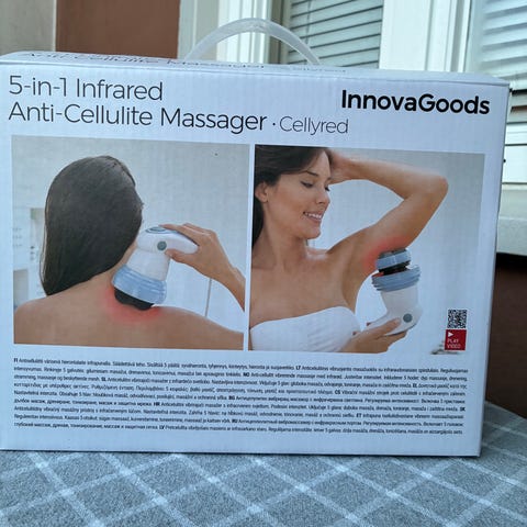 Mukaan tulee alkuperäinen pahvinen tuotepakkaus / pahvilaatikko, hierontalaite, latauspiuha ja käyttöohjeet.