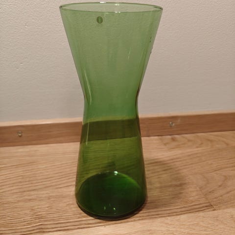 Materiaalina lasi, väreinä vihreä ja kirkas.