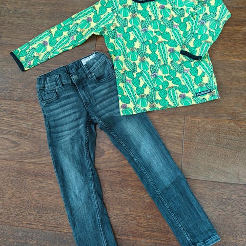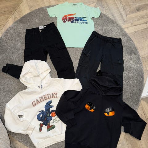Neliosainen vaatepaketti, eri kokoja, mutta käytetty 116-kokoisena.