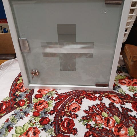 Lukolla metallinen pikku kaappi vaikka lääkekaapiksi.