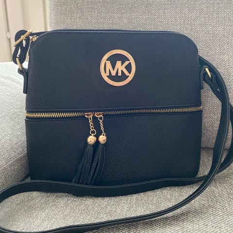 Hyväkuntoinen musta Michael Kors- logolla ja tekstillä oleva laukku. Sisäpuolella 2 pientä taskua, yksi isompi sivutasku.