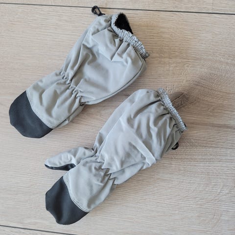 Reiman välikausihanskat koko 2, kärjissä kulumaa, mutta pitäneet vielä kosteuden ulkopuolella. Noin 3v:llä ollut käytössä.