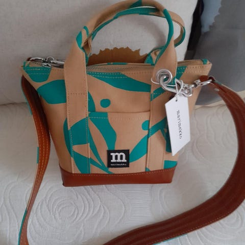 Marimekon Fikka Solid laukku vihreänä. Jäänyt vähälle käytölle, joten seuraavaan kotiin.