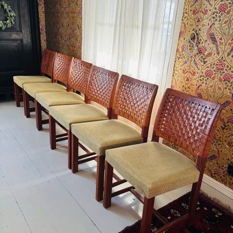 Ilmari Lappalaisen 50-luvulla Askolle suunnitellut tuolit 6kpl. Hinta kaikille tuoleille yhteensä. Tuolit on kunnostettu.