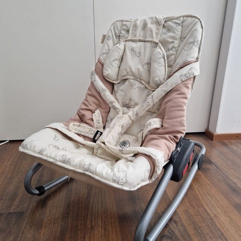 Meillä ollut käytössä juurikin syöttötuolissa 0-5kk ikäisellä. Ruokalappujen tarroista tullut kankaaseen nyppyä ja muutenkin kankaassa sanomista. Ei kuitenkaan estä käyttöä. Kiinnityssysteemit ehjät!