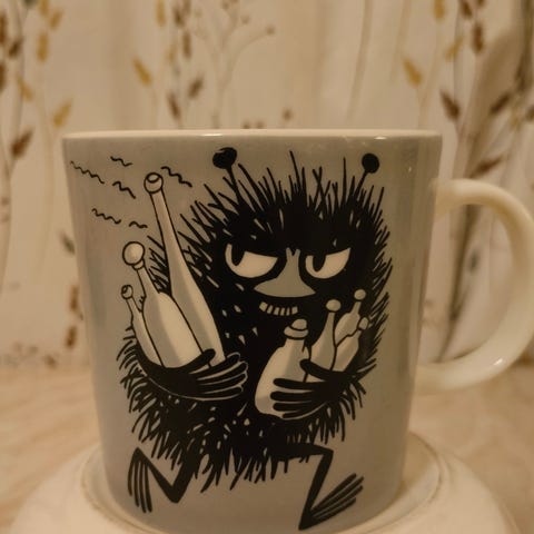 Arabia Muumi Haisuli muki harmaa keramiikka