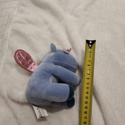 Monivärinen pehmolelu, joka esittää yksisarvista. Lelussa on suuret pyöreät silmät, pieni sarvi päässä ja pörröinen häntä. Värityksessä on vaaleanpunaista, violettia, turkoosia ja vaaleaa beigeä. Sopii lapselle leikkikaluksi tai koristeeksi. Materiaali on pehmeää kangasta ja täytettä, koko on pieni/keskikokoinen käteen sopiva pehmolelu.
