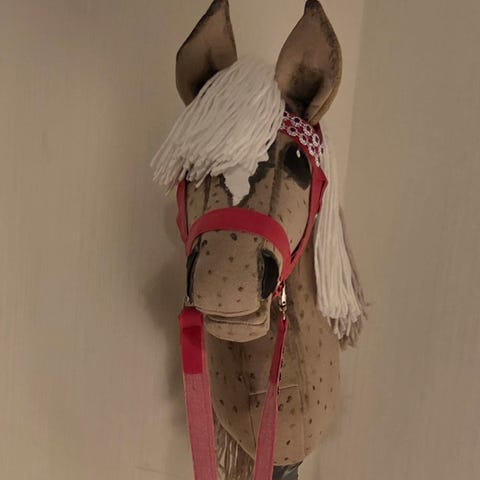 Napakkatayttö, keppi pysyy hyvin kiinni eikä pyöri päässä