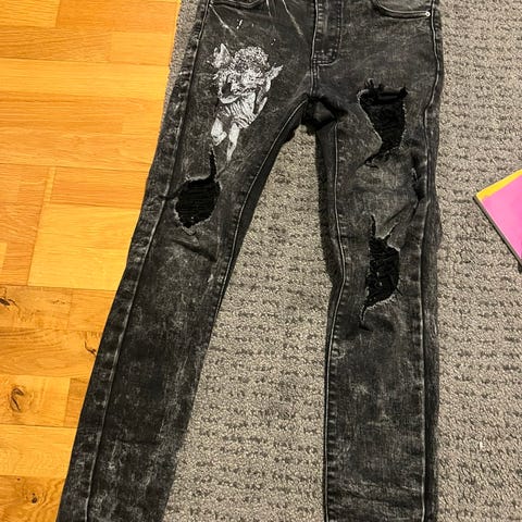 Ihan hyvässä kunnossa olevat farkut enkelissä pieni repeämä mikä näkyy kuvassa
