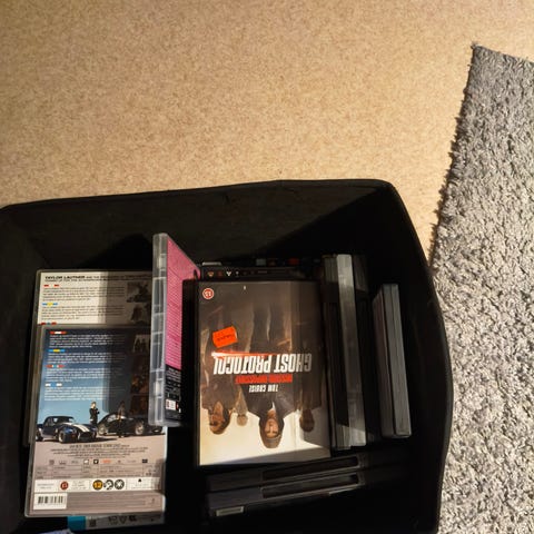 Suurin osa DVD:tä, mukana muutama blu-ray. Lasten elokuvia, jännäreitä, kauhua, scifiä, komediaa...