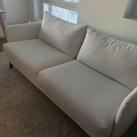 Hakusanat: sohva, sohvat, pohjanmaan kaluste, kolmen istuttava, huonekalu, huonekalut, Valmistaja, kukkakuvio, käytetyt huonekalut