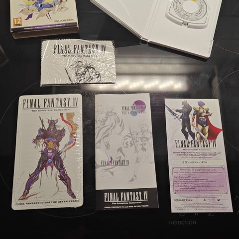 DissidiaFinal Fantasy PSP-pelin collector's edition (PAL) Sisältää pelin, pahvirasian, mini soundtrackin, taidekirjan, kaksi taidekorttia sekä mini peliguiden. Kaikki tavarat ovat todella hyvässä kunnossa, CD ja UMD-levyissä ei naarmuja, paperitavarassa ei juurikaan rispaantumisia. Pahvikotelossa pientä värjäymää jos läheltä tarkastelee, mutta muuten hyvässä kunnossa.