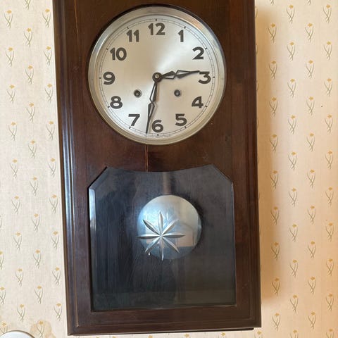 Vanha kaunis vedettävä seinäkello. Hieno sisustuselementti jo tuollaisenaan. Jostain syystä vain ei lähtenyt toimimaan..