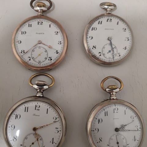 Hopeinen taskukello. Mekanismi toimii. Siisti kellotaulu.