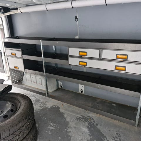Pakettiauton metallinen hyllykkö