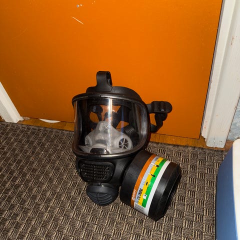 Lisäksi suodattimet, yksi vähän käytetty ABEK ja yksi käyttämätön PF10.