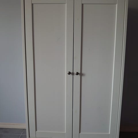 Ikean harmaanbeige Havsta kaappi itse lisätyillä tammijaloilla. Näin on enemmän kuin liinakaappi ja kevyemmän näköinen. Ollut meillä vain vuoden ja myydään muuton vuoksi.