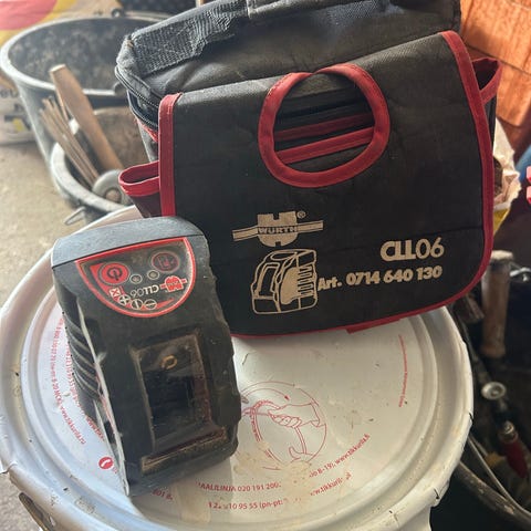 Avitec putkilaser. Oranssi laite kovamuovisessa kuljetuslaukussa, jossa muotoiltu sisus laitteelle ja tarvikkeille. Soveltuu putkitus- ja linjaustöihin rakennus- ja maanrakennuskohteissa.