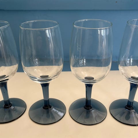 Luminarc, Domino valkoviinilaseja mustajalkaisena, tilavuus 19cl. Lasit käyttämättömiä, säilytetty neljän kappaleen tehtaan pakkauksissa. Hinta 5 euroa pakkaus+toimitusmaksu.