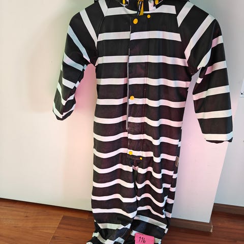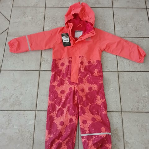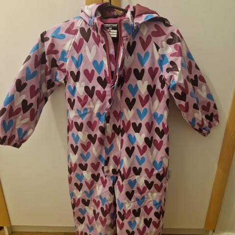 Hyväkuntoinen ja täysin ehjä sadehaalari, pitää siis vettä! Ihana kukkakuosi🌸 Jalkalenksuissa ja napeissa näkyy kulumaa, muuten en puvussa näe kulumia ulkovuoressa. Trikoovuori. Sisävuori haaruksista korjattu, oli sauma kohdasta avautunut.
