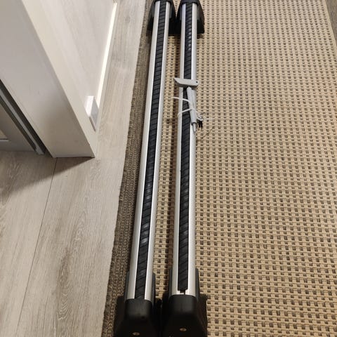 Volkswagen Passat B8 sedanin alkuperäiset kattotelineet, vuosimalleihin 2014-2024. Mukaan kiristystyökalu sekä avain.