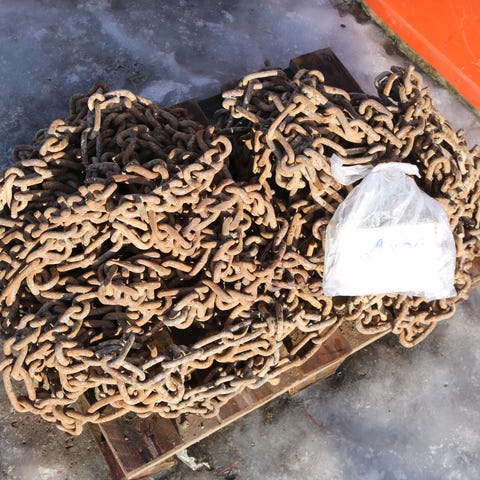 käytetyt piikkiketjut 16,9-34, h. 400 €
