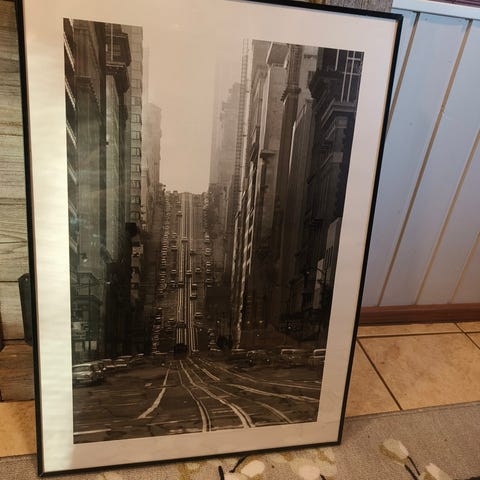IKEA taulu mustavalkoinen. Suurikokoinen seinätaulu, jossa mustavalkoinen valokuvamainen aihe. Kehykset tummat. Sopii sisustuselementiksi esimerkiksi olohuoneeseen, työhuoneeseen tai julkitilaan. Tarkemmat mitat voi tarvittaessa mitata paikan päällä.