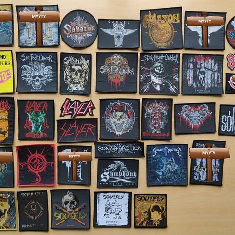 Uusia, käyttämättömiä bändimerkkejä. Ommeltavia ellei muuta sanota. Mitat eivät välttämättä AIVAN millintarkkoja ole.