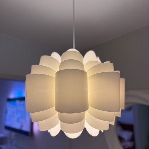 Valkoinen kaapin alusvalaisin, missä kaksi pistorasiaa. Toimii!