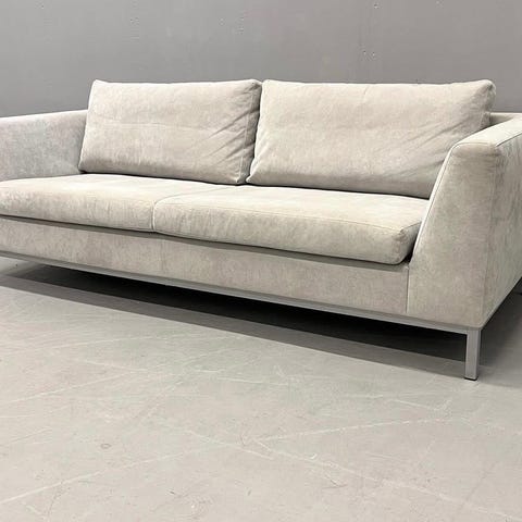 - Iskun 3-istuttava sohva, konjakin värisellä alcantara kankaalla.