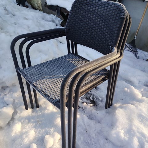 Myydään musta metallirunkoinen polyrottinkinen parveke-/terassituoli.