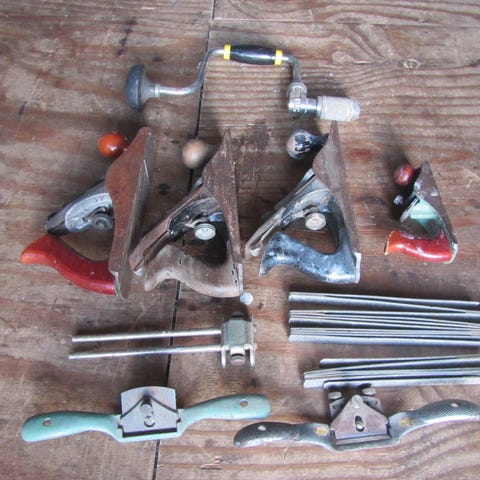 5 kpl puutaltta + kivi. Vanhoja toimivia puusepän työkaluja.