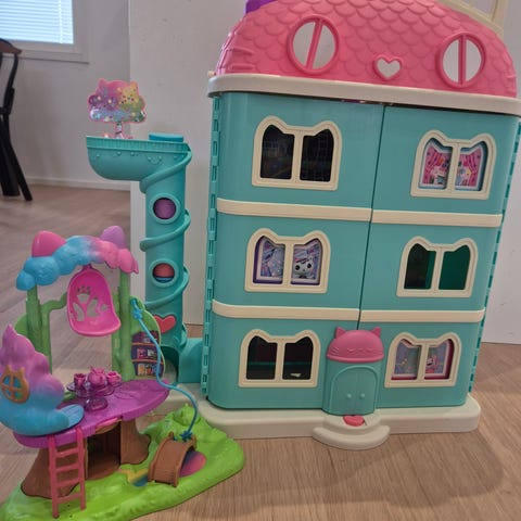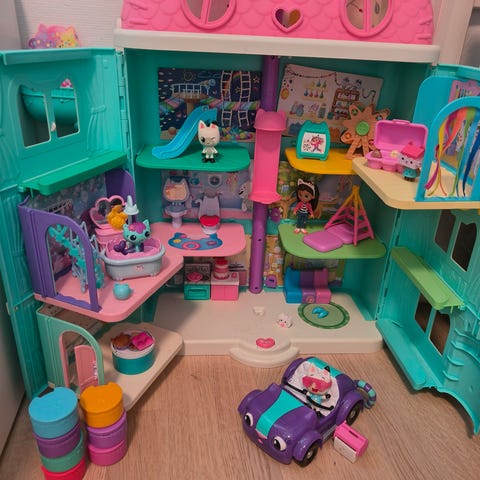 Myydään Gabbyn nukketalo, jonka mukana tulee 2kpl lisähuone, bilehuone katolle, hahmoja ja tarvikkeita.