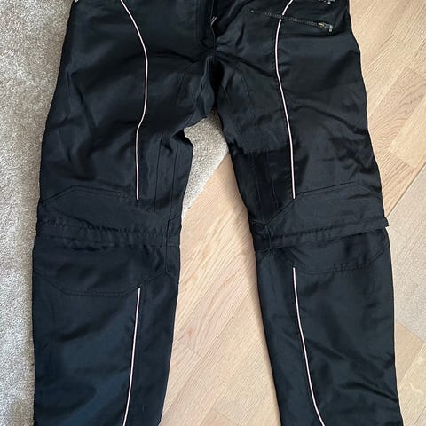 Tosi hyvässä kunnossa Sweep ajohousut koko 2XL. Väri musta. Housuissa on olkaimet, vetoketjutaskut edessä sekä heijastinyksityiskohtia, ilmaventtiilit reisissä, irto vuori, suojat polvissa