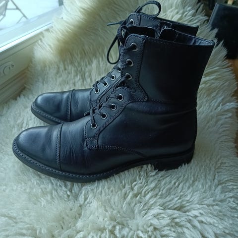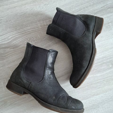 Myydään ECCO nahkaiset nilkkurit, koko EU 42. Sisäpituus noin 26,9 cm. Aitoa nahkaa. Kunto hyvä, käytön jälkiä löytyy, ulkopuolella kantapään alueella on pieni hankaus/pinta kulumaa (näkyy kuvissa). Vetoketjut toimivat hyvin ja pohjat hyvässä kunnossa. Kunto ja yksityiskohdat näkyvät kuvissa, kuvat ovat osa kuvausta.