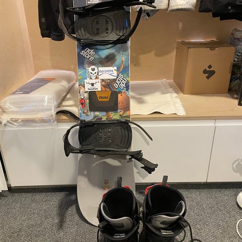 Icon Snowboards-lumilauta, pituus noin 140 cm. Siteet mukana ja toimivat. Lauta on käytetty ja pinnassa hieman naarmuja, mutta käyttökelpoinen