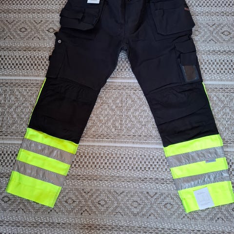 Työhousut miesten koko 58 keltainen-musta heijastimilla