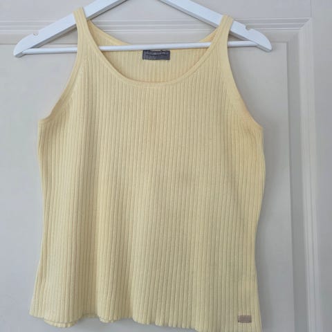 Claire.dk hihaton oranssi toppi, koko M. Materiaali 100 % puuvilla, joustavaa ribbineulosta. Kai-kai n.43 cm.