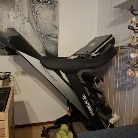 Trekkrunner TR007 juoksumatto kotikäyttöön. Mallissa on käsituet ja ohjauspaneeli etupaneelissa. Juoksualusta soveltuu kävelyyn ja kevyeen juoksuun. Laitteen voi taittaa pystyasentoon säilytystä varten. Väri on musta hopeansävyisillä jaloilla. Sopii sisäliikuntaan esimerkiksi kotiin tai vapaa-ajan tiloihin.