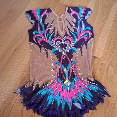 Turkoosi lasten Zone Stellar voimistelupuku. Koko 26, kokotaulukon mukaan 5-6 v, 116/128, mutta vastaa pienempää, on 110 cm pituiselle nafti. Käytetty kerran, uudenveroinen.