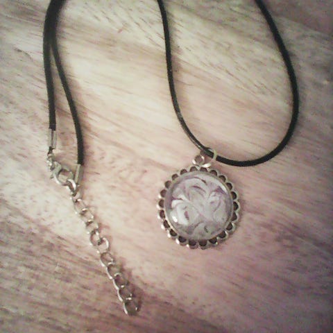 Unisex riipuskaulakoru, jossa ruskea nauha ja metallinen, kaiverretulla kuviolla koristeltu putkimainen riipus. Nauha on säädettävissä solmujen avulla. Materiaalina on muu materiaali kuin jalometalli. Sopii käytettäväksi arjessa tai asusteena erilaisiin asukokonaisuuksiin.